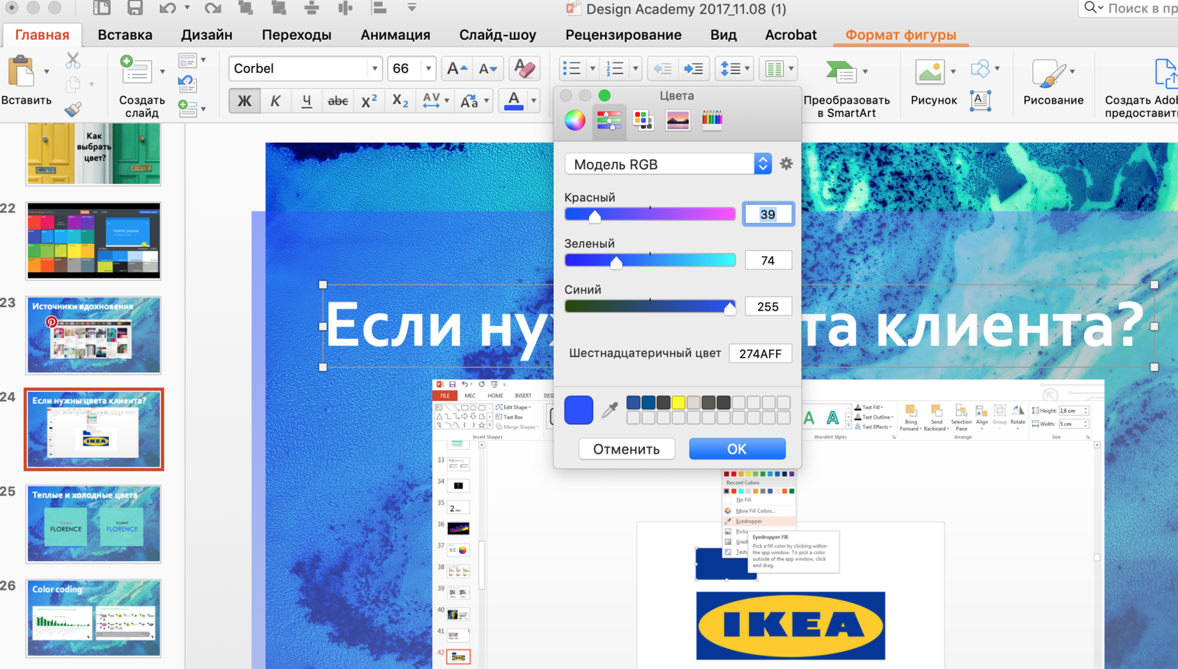 Если цветовая гамма яркая, она создает настроение бодрости, энергичности. Теплые тона ассоциируются со спокойствием, расслабленностью, надежностью. Холодные — с инновационностью, строгостью. Решите, какие ассоциации должен вызывать ваша презентация, продукт и, основываясь на этом, выбирайте цветовую гамму.